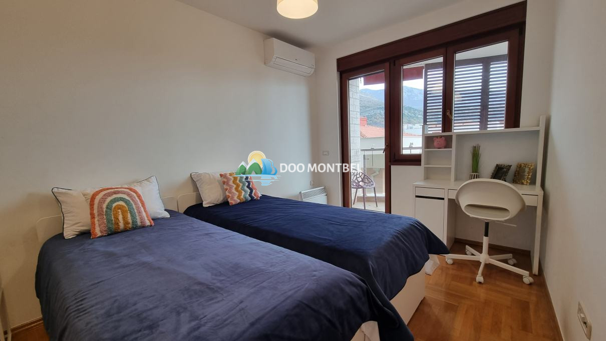 Комфортный и светлый апартамент с отдельной спальней и видом на море в комплексе с огромным бассейном. 4 этаж, есть лифт. Уличный паркинг возле дома. Недорогое обслуживание – 1.20 евро за 1 кв.м. в месяц. Современный лаконичный дизайн квартиры; комфортная качественная…